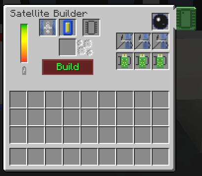 Once you have Steps 2 and 3 completed and have placed an id chip or link in the left middle slot, you can build the satellite. The picture shows a completed satellite used for gathering distance data. Pressing the "Build" button will produce a new satellite item and if you hover over it in your inventory you can see all the information regarding the satellite. You will also see that the id chip has been programmed with the ID of the newly made satellite and a description of the type of satellite.