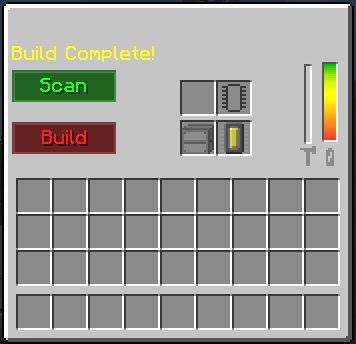 You can now assemble your space station section into a module. In the space station assembler, place a satellite bay in the top left slot. If this is your first space station module, place a blank space station ID chip in the top right slot. If this is a module to an existing space station, place a programmed space station ID chip to the existing space station in the top left slot. WARNING: When you click build, the programmed space station ID chip will be consumed. Be sure you have followed Step 7 below to make a copy. When you are ready, press "Scan" and then press "Build". WARNING: Once you press build there is no going back! Any blocks currently in the scan will be removed permanently and placed in the space station container. As you can see in the picture, once the assembly is complete you will receive a space station container and if this is your first module, a programmed space station ID chip.